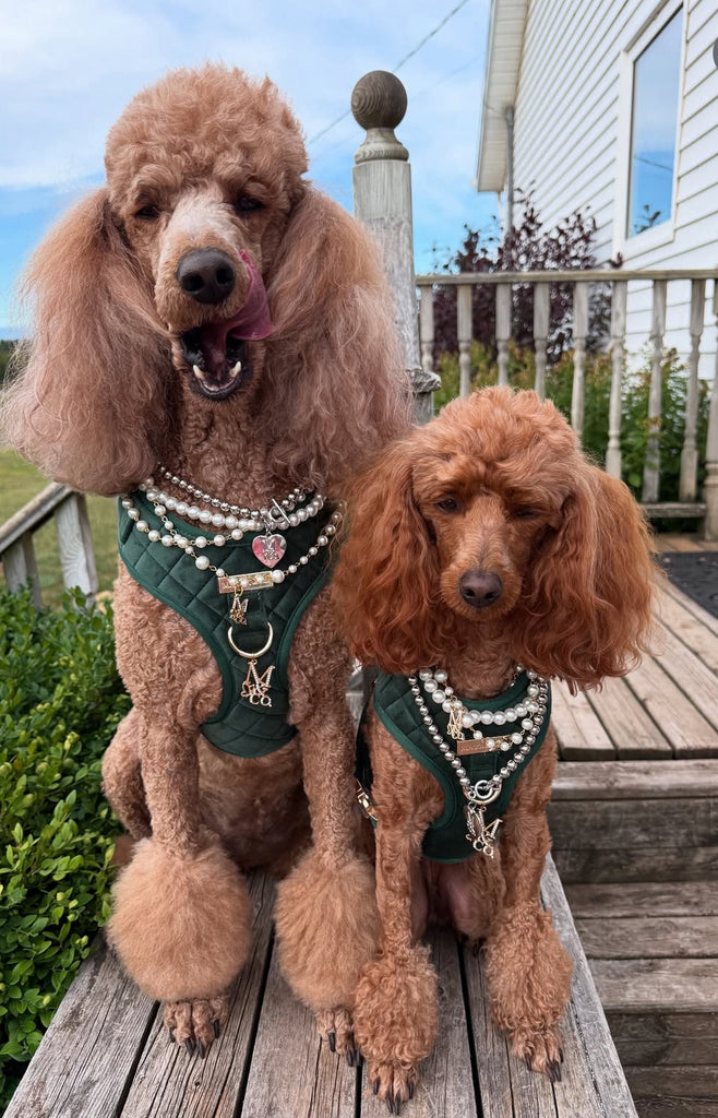 Where elegance meets comfort – our Velvet Collection is the perfect blend of luxury, style and comfort. Introducing the Velvet Holiday Collection, where sophistication and comfort meet in perfect harmony. Crafted from the finest velvet and adorned with radiant Swarovski crystals (optional), this collection elevates your furbaby’s style to unparalleled heights. Featuring dual D-rings front and back for functionality and finished with exquisite gold hardware, this is more than just a harness set—it's a statement of elegance.
