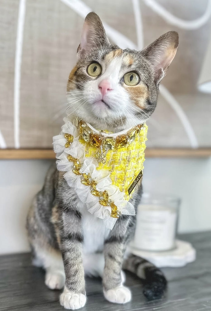 Made with the most luxurious tweeds, Cruise Collection is Haute Couture for your fur baby. An ode to creativity and the details of this collection is perfect for all the most extravagant dinners and banquets. High quality tweeds have hints of shimmer and gems making it perfect for every special occasion or big event on the red carpet. As with any line of ours, this collection is made for those who love luxury without compromising comfort in mind. Lined with breathable lining, this collection can be worn year round.