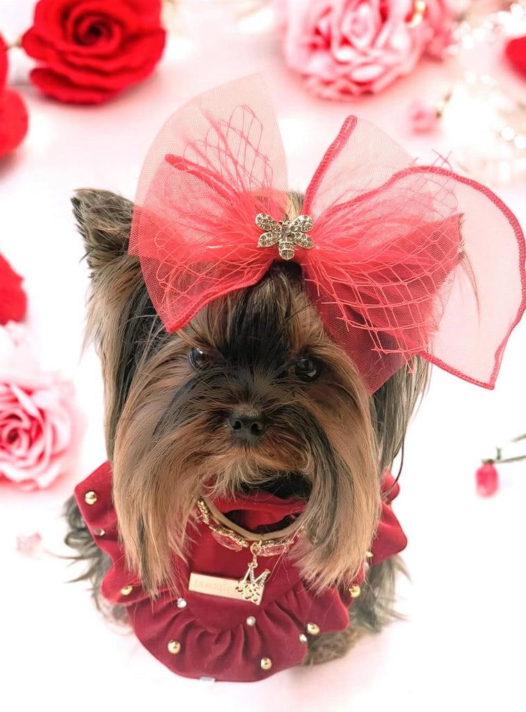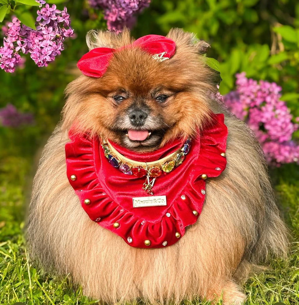 Elevate your pet’s holiday style with our luxurious velvet bandana collection. Made from premium velvet fabric, bandana may features delicate pearl accents, shimmering Swarovski crystals, and an elegant ruffled edge for a sophisticated touch. Finished with a matching bow and a signature diamond charm, this accessory is perfect for festive celebrations, photoshoots, or simply making your fur baby the center of attention.