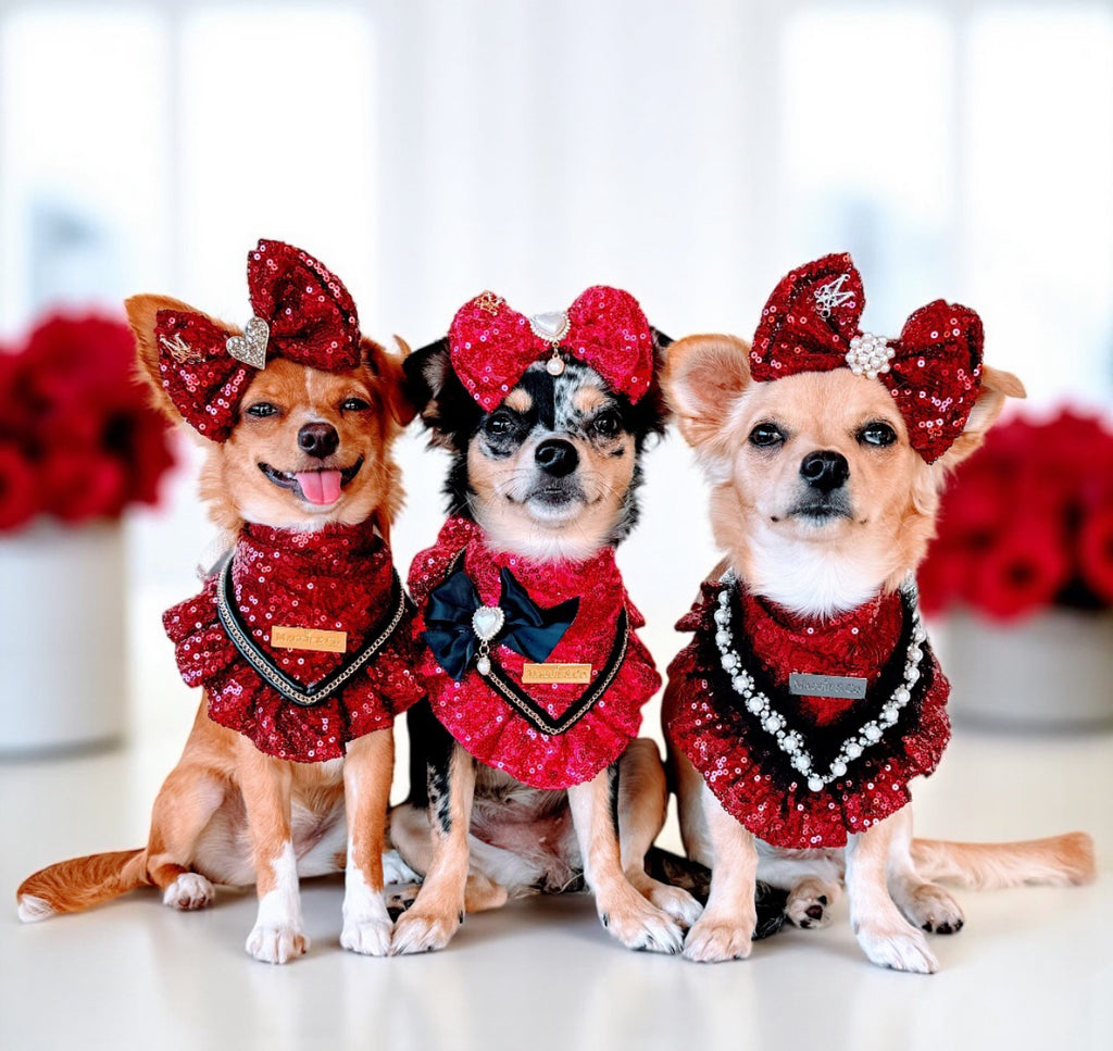 Introducing the Signature Sequin Collection, part of the Romance Collection - where glamor  meets artistry, and bold elegance takes center stage. Designed for the most discerning clientele, this collection transforms your furry companion into the star of every soirée and red-carpet event.