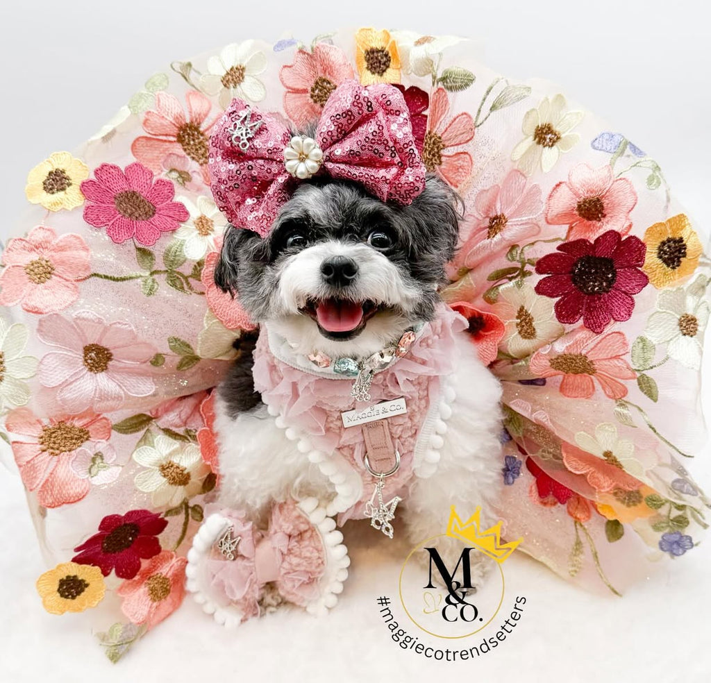 The layers of ruffled organza add a whimsical touch. With an adjustable fit and breathable inner lining, your pet will feel secure and stylish, no matter the occasion.